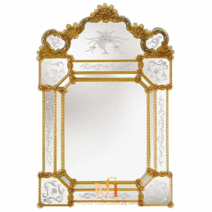 هل ترغب في تحويل مساحتك بلمسة من الأناقة الخالدة؟ قطعة مرايه الحمام أمالفي الفينيسية تجسد التاريخ الغني وحرفية صناعة الزجاج الفينيسي. تُصنع يدويًا في قلب مدينة البندقية، لتكون شاهدًا على مهارة الفنانين من MuranoGlassItaly.