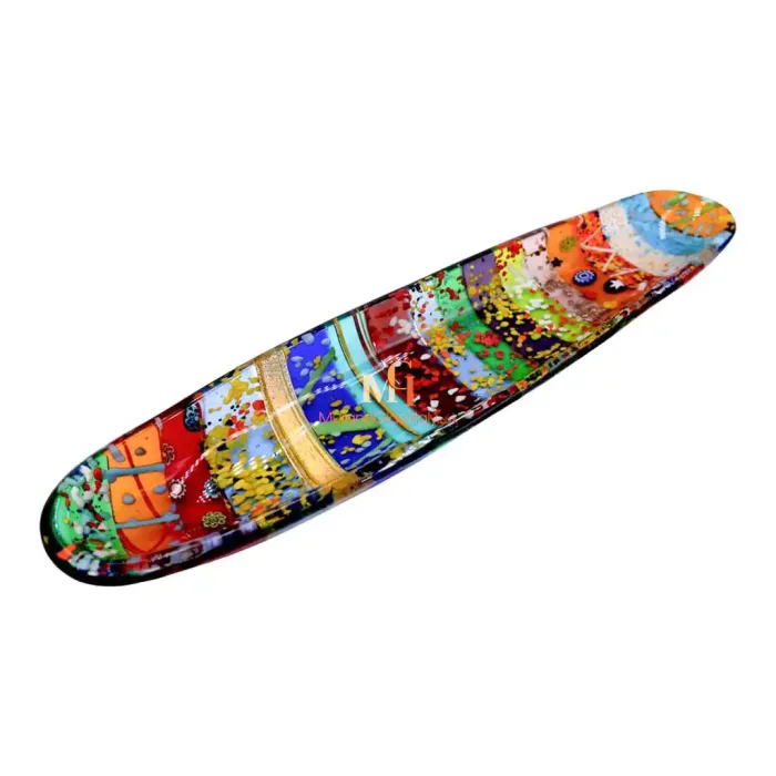قم بتحويل مساحتك مع لوحة فينيسية مذهلة من MuranoGlassItaly الحرفيون. طبق كانوا هو تحفة فنية حقيقية في صناعة الزجاج الإيطالي. يُظهر شكله الأنيق الممدود وتصميمه النابض بالحياة الجمال الخالد للحرفية الفينيسية.