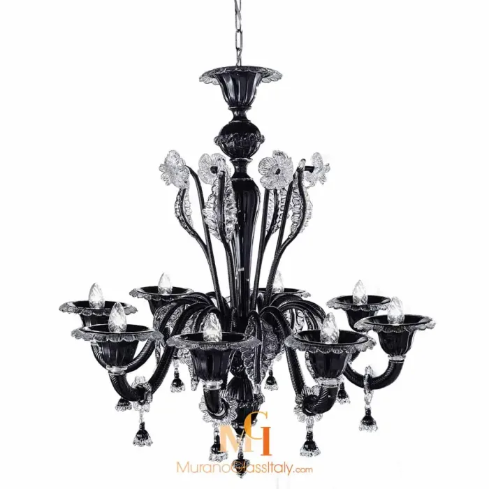 أضف لمسة من الأناقة والفخامة عن طريق اقتنائك نجف أسود من الكريستال و من زجاج مورانو الأنيق. إ نه تحفة فريدة من نوعها مثالية كديكور منزلي فخم. تصنع هذه الثريا وفقًا لتقاليد صناعة الزجاج التي يعود تاريخها إلى 1000 عام في جزيرة مورانو بإيطاليا, كن على يقين أنه من الصعب أن تجد شبيهتها في السوق لأنها تتميز بأسلوب ايطالي مميز وصنعها يتم عن طريق اختيار أفضل الكريستال, كما أنها تجمع بين الفن, الجمال, العصرنة والجودة, هدفها ليس فقط منحك اضاءة جيدة بل أيضا لمسة من الروعة والجمال, إذا كنت تحتاج إلى المزيد من المعلومات حول هذا ، فإن فريقنا الخبير متاحا لتزويدك بكل ما تحتاجه, و يسعدنا دائما مساعدتك.