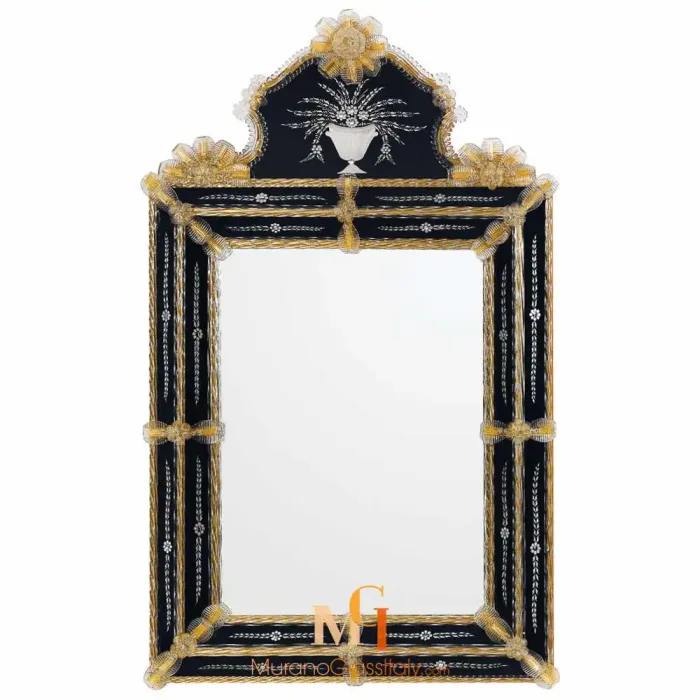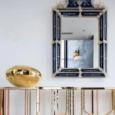 Verleihen Sie Ihrem Zuhause Eleganz mit dem Torino-Meisterwerk aus unserer Design Wandspiegel Kollektion und erleben Sie die zeitlose Schönheit italienischer Handwerkskunst. Handgefertigt im Herzen Venedigs von unseren erfahrenen MuranoGlassItaly-Kunsthandwerkern, verkörpert dieser Spiegel jahrhundertealte venezianische Tradition. Die Kunst der venezianischen Spiegelherstellung vereint Eleganz, Innovation und eine unvergleichliche Liebe zum Detail.