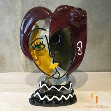 Die Kollektion „Hommage an Picasso“ verbindet puren Luxus mit dem Hauch italienischer Verlockung. Die Glasbläsermeister spielen mit Sand und Feuer, um großartige Formen zu schaffen und der Vorstellungskraft einen Resonanzraum zu geben. Es sind Kreationen für das ausgefallene und moderne Wohnen. In den atemberaubenden Skulpturen trifft sich das schicke Design mit der 1000-jährigen Tradition der Glasherstellung aus Murano. Die Murano Glas Gesicht Bella Donna ist ein einzigartiges Meisterwerk, hergestellt auf Murano, Italien. Das Kunstwerk ist vom Künstler signiert, vom Atelier gekennzeichnet und wird Ihnen mit einem Echtheitszertifikat versandkostenfrei übersandt.