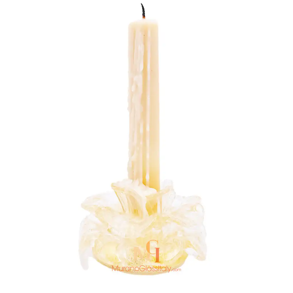 Bringen Sie Eleganz und Wärme in Ihr Zuhause mit Murano Kerzenhalter Fresia, einem zeitlosen Meisterwerk, das von Hand im Herzen Venedigs von unseren