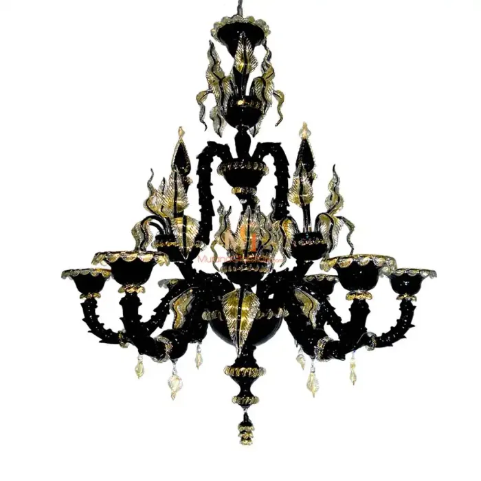 Erhellen Sie Ihr Zuhause mit der geheimnisvollen Eleganz des Schwarzer Kronleuchter Modern und entdecken Sie den zeitlosen Zauber venezianischer Handwerkskunst. Handgefertigt im Herzen Venedigs von unseren MuranoGlassItaly-Kunsthandwerkern, vereint Enigma Raffinesse, Stärke und Faszination. Jedes goldene Blatt und jeder geschwungene Arm wird von Hand geformt, wobei tiefschwarzes Kristallglas und funkelnde Goldakzente zu einem Kunstwerk von stiller, luxuriöser Schönheit verschmelzen.