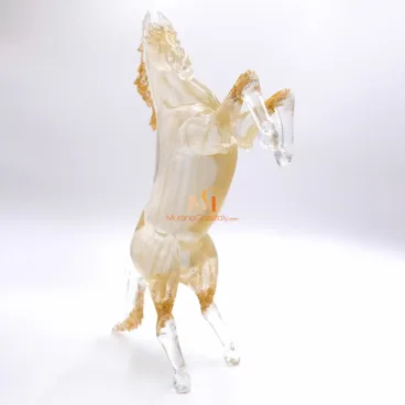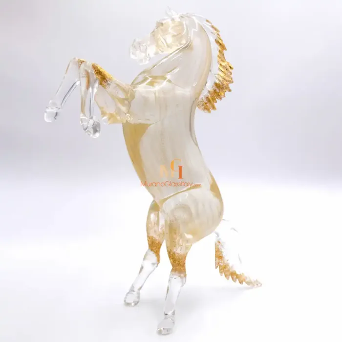 Erleben Sie die atemberaubende Schönheit unserer gläsernen Glas Pferd Skulptur! Dieses einzigartige Stück wird sorgfältig von unseren erfahrenen Künstlern in der Lagune von Venedig gefertigt. Dieses einzigartige Kunstwerk zeigt die exquisite Kunstfertigkeit und Handwerkskunst unserer MuranoGlassItaly-Künstler. Diese Pferdeskulptur wird von Hand geformt und detailliert, wobei jeder Kurve und jedem Muskel große Aufmerksamkeit geschenkt wird, um eine lebensechte Form zu schaffen. Während des Blasprozesses wird dem Glas Gold hinzugefügt, was der Skulptur ihr schimmerndes und luxuriöses Aussehen verleiht. Während des gesamten Prozesses nutzen unsere erfahrenen Kunsthandwerker traditionelle Glasbläsertechniken, die über Generationen weitergegeben wurden, um ein Höchstmaß an Qualität und Handwerkskunst zu gewährleisten. Das Ergebnis ist eine atemberaubende Pferdeskulptur aus Muranoglas, die ein wahres Kunstwerk und ein Beweis für die Schönheit und Eleganz dieses zeitlosen Handwerks ist. Bestellen Sie jetzt und holen Sie sich die Anmut und Kraft dieses großartigen Geschöpfs in Ihr Zuhause. Warten Sie nicht – nehmen Sie dieses wunderschöne Glas Pferd mit nach Hause! Das Kunstwerk ist mit einem digitalen Echtheitszertifikat versehen. Bei MuranoGlassItaly fertigen wir alle unsere Kunstwerke von Hand und bieten unseren Kunden gerne die Flexibilität, ihre Kunstwerke individuell anzupassen. Bei Fragen zur Individualisierung kontaktieren Sie uns bitte unter customer@muranoglassitaly.com.