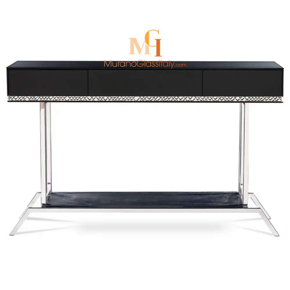 Lassen Sie Ihr Zuhause eine Geschichte von Stil erzählen – mit einem Konsolentisch Marmor Schwarz, der pure Eleganz ausstrahlt. Diese Konsole ist kein gewöhnliches Möbelstück. Sie ist ein handgefertigtes Kunstwerk, erschaffen im Herzen Venedigs von unseren MuranoGlassItaly Kunsthandwerkern. Jeder Akzent trägt die Seele italienischer Meisterschaft in sich.