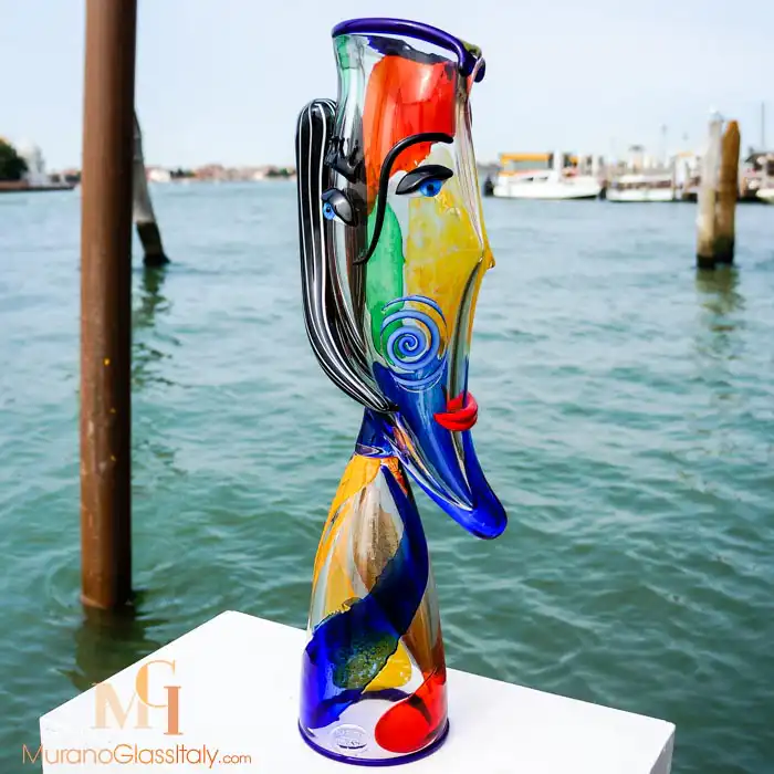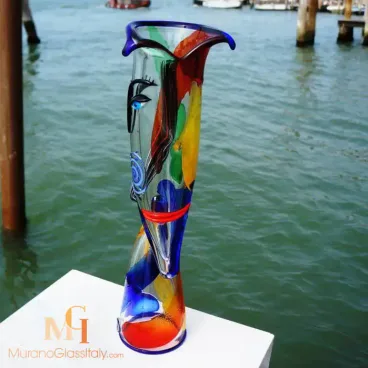 Lleve a casa la esencia de la expresión artística con el Gran Jarrón de Cristal de Murano y deje que su cautivador diseño transforme su espacio en una galería de creatividad y sofisticación. Inspirada en el estilo fragmentado de Picasso, esta fascinante escultura encarna la complejidad de las emociones humanas, la belleza de la imperfección y la armonía entre abstracción y realidad. Cada curva y cada detalle cuentan una historia, invitándole a explorar la profundidad de la visión artística.