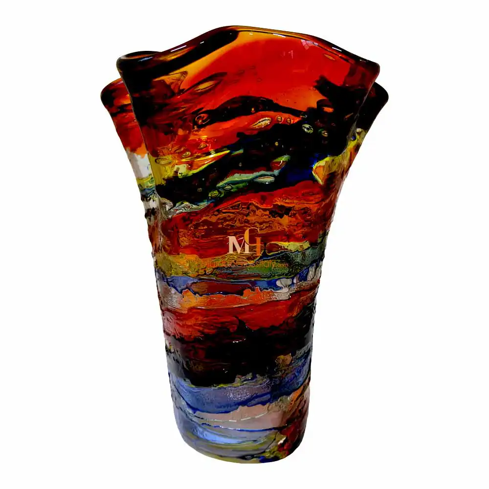 Eleve su espacio con la exquisita elegancia del Jarrón Estilo Murano hecho a mano por nuestros artesanos de MuranoGlassItaly. Nacida en el corazón de Venecia, esta obra maestra llamada Minerva captura la vibrante esencia del arte veneciano. Inspirada en la diosa de la sabiduría y la creatividad, sus patrones arremolinados y sus atrevidas texturas reflejan los vivos colores del amanecer sobre la laguna veneciana. Cada detalle está meticulosamente moldeado a mano, un testimonio de la centenaria tradición del soplado de cristal de Murano.