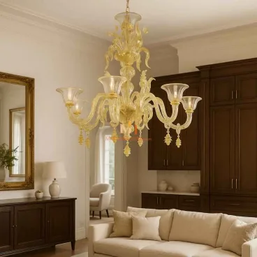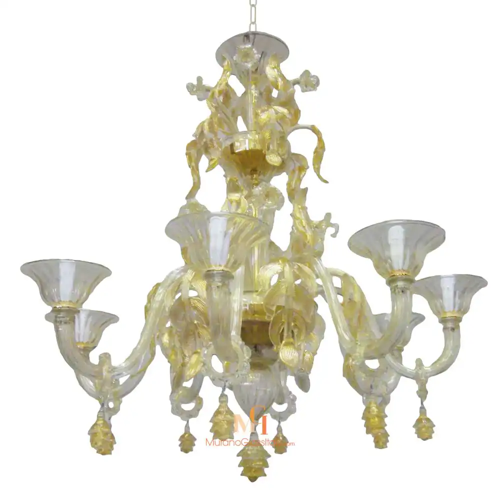 Lámpara de araña de cristal de Murano dorado – Solenne