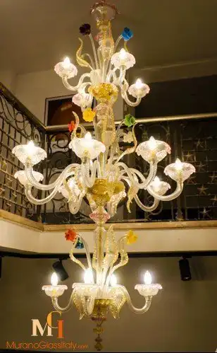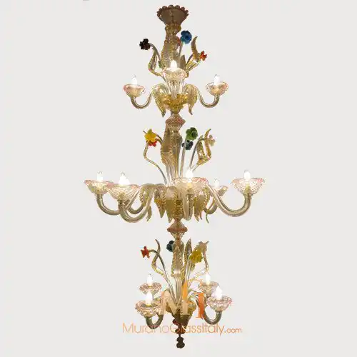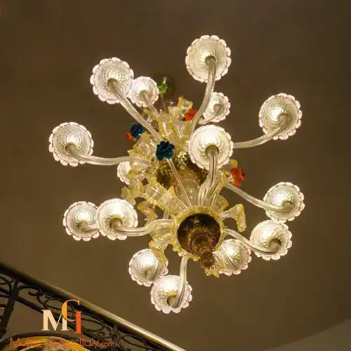 Découvrez ce sublime Luminaire Verre de Murano et illuminez votre intérieur. Ce chef-d’œuvre à la forme extravagante, est capable de transformer n’importe quelle pièce en un décor époustouflant. Laissez-vous séduire par son design exceptionnel et ses délicates fleurs multicolores. Cette élégante création a été entièrement réalisée à la main. MuranoGlassItaly est heureux de vous offrir une personnalisation de ce lustre. Choisissez le nombre de lumières et de couleurs et créez le lustre de vos rêves qui s’adaptera parfaitement à votre espace. Pour plus d’informations, contactez-nous à customer@muranoglassitaly.com.