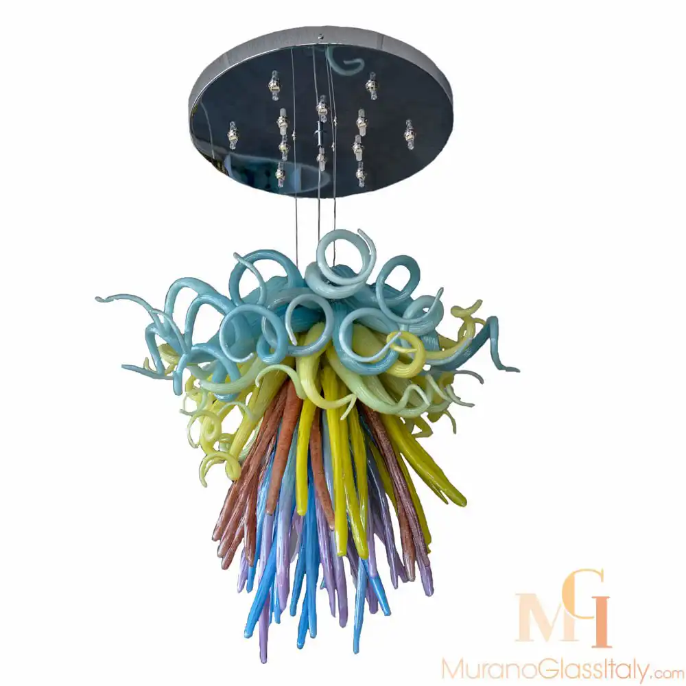 Notre Lustre Coloré est conçu pour impressionner tous ceux qui entrent dans la pièce. Comme le nom Eclettico le suggère, l’œuvre combine plusieurs éléments dans un design unique et saisissant. Cette création moderne est entièrement réalisée à la main dans des fours vénitiens. Ici, les meilleurs artistes italiens combinent des designs contemporains avec des techniques traditionnelles, créant des œuvres d’art qui n’ont pas d’égal dans le monde. Chaque élément de la suspension a été conçu avec la plus grande attention aux détails. Le résultat est une pièce magnifique et unique. Le contraste entre les bras recourbés vers le haut et les éléments verticaux crée une sensation de mouvement et de dynamisme dans la pièce. Avec une hauteur de 150 cm et un diamètre de 70 cm, ce lustre est un véritable accroche-regard et fait une grande déclaration dans n’importe quelle pièce. Les bras retournés complexes créent un équilibre harmonieux entre minimalisme et ornementation. Le nombre de lumières peut être adapté à vos besoins, vous permettant de personnaliser le Lustre Coloré pour qu’il corresponde parfaitement à l’ambiance et aux exigences d’éclairage de votre espace. Pour toute demande de personnalisation, n’hésitez pas à nous contacter. Veuillez nous écrire par e-mail à customer@muranoglassitaly.com.