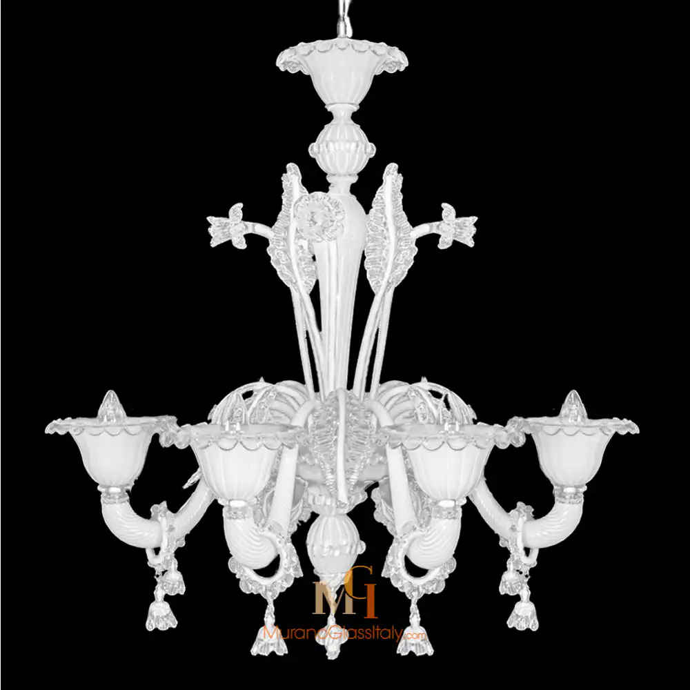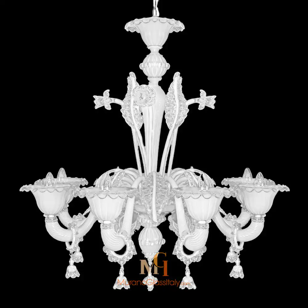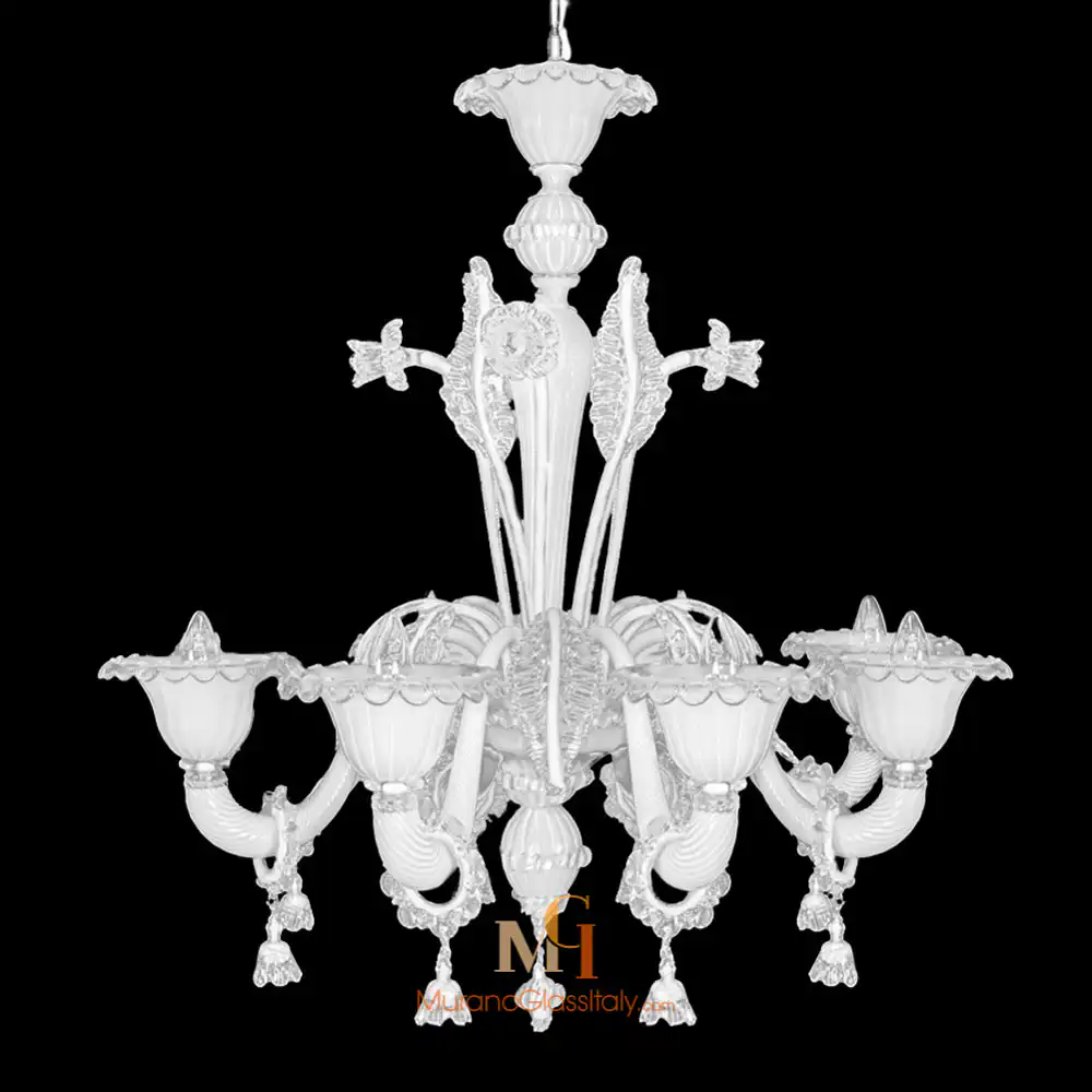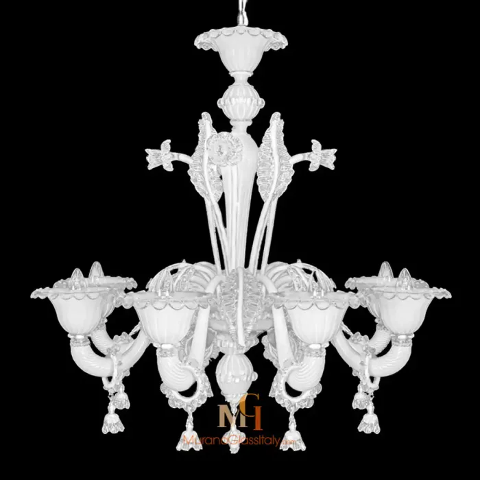 Découvrez la pureté et l’élégance de notre Lustre Cristal Blanc et sublimez votre espace. Nos maîtres verriers le créent avec le meilleur verre de Murano. Ce lustre incarne sophistication et raffinement; il devient la pièce maîtresse idéale de tout intérieur. Ses coupes de verre délicates, tournées vers le haut, composent un jeu de lumière et d’ombres saisissant. Le blanc du verre ajoute pureté et simplicité, souligne des courbes gracieuses et des détails fins. Imaginez‑le dans un vaste hall d’entrée où il guide vos invités, ou dans une salle à manger luxueuse où il diffuse une douce lueur. Dans un hall d’hôtel sophistiqué ou dans un bureau moderne, il capte tous les regards. Son design intemporel et son savoir‑faire d’exception promettent un élément précieux pour tout lieu qui recherche luxe et beauté. Chez MuranoGlassItaly, nous façonnons chaque œuvre à la main et personnalisons chaque lustre, du nombre de lumières jusqu’à la hauteur. Créez ainsi un éclairage sur mesure qui s’accorde parfaitement à votre espace et à vos envies. Pour toute question, contactez nos experts à customer@muranoglassitaly.com.