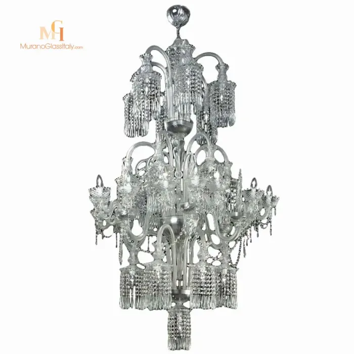 Le Lustre de Luxe a été conçu pour apporter le charme des palais vénitiens aux espaces classiques et modernes. Le lustre majestueux est composé de 35 lumières qui créent une source lumineuse incomparable dans votre espace de vie, tandis que les divers éléments décoratifs reflètent la lumière créant un effet saisissant et époustouflant. Comme son nom l’indique, le lustre Brillante est décoré de brillantes cascades de pendentifs en cristal – la touche finale pour faire briller votre maison avec élégance. La silhouette raffinée fait du lustre la solution parfaite pour éclairer une salle à manger ou une entrée, enchantant les invités à leur arrivée. Laissez-vous inspirer par la beauté et la perfection d’un chef-d’œuvre Made in Italy ! La richesse des détails et l’attention aux finitions précieuses montrent l’excellence artisanale de nos artistes qui travaillent le verre de Murano selon les techniques traditionnelles vénitiennes. Comme toutes nos œuvres sont faites à la main, le lustre peut être personnalisé dans le nombre de lumières et de couleurs pour correspondre parfaitement à votre intérieur et à vos préférences. Pour plus d’informations, écrivez-nous un e-mail à customer@muranoglassitaly.com.