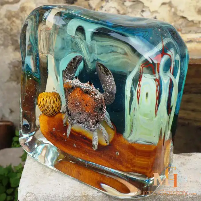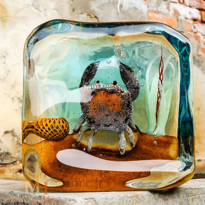 L’acquario Murano granchio cattura la bellezza del fantastico mondo sottomarino. L’artista vuole descrivere la creatura marina nel suo proprio ambiente naturale, ispirato dalle tipiche scene marine visibili nelle isole Veneziane. Un pezzo unico, stimolante e affascinante. L’opera è firmata dall’artista, ed è fornita di certificato di origine.