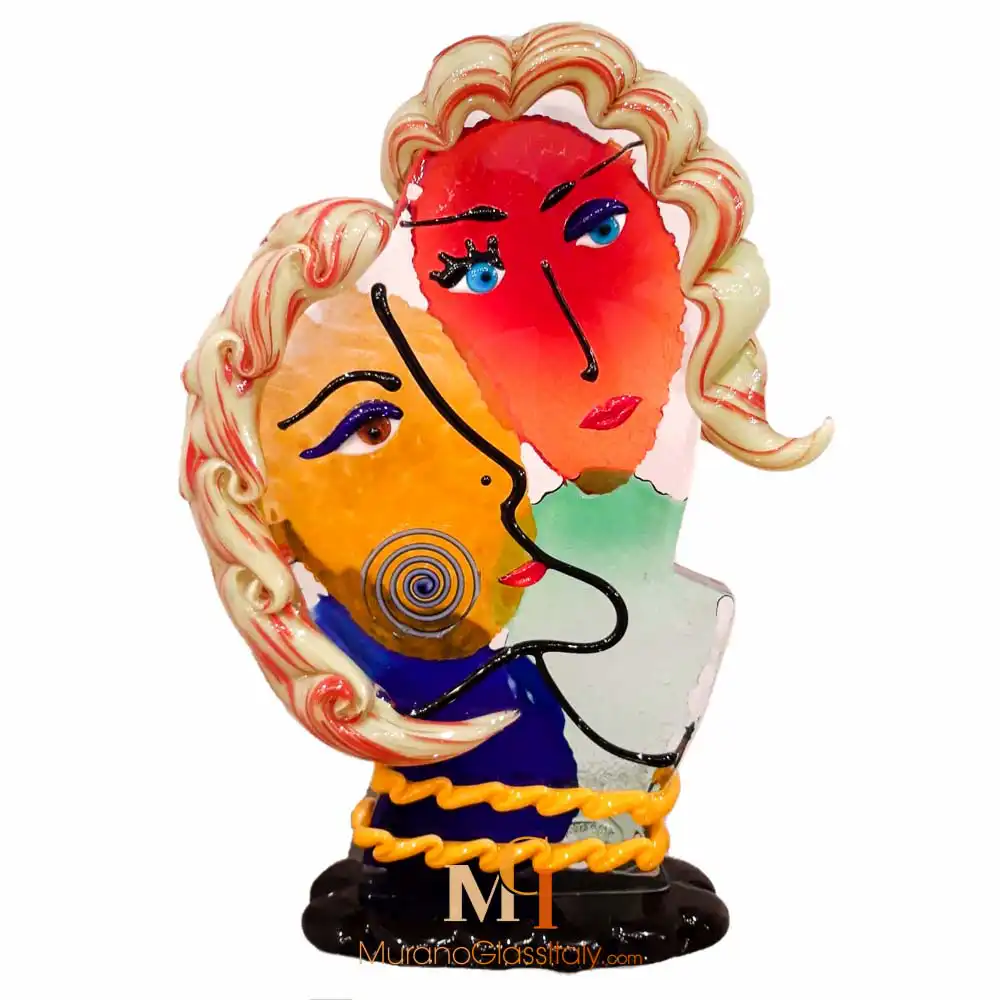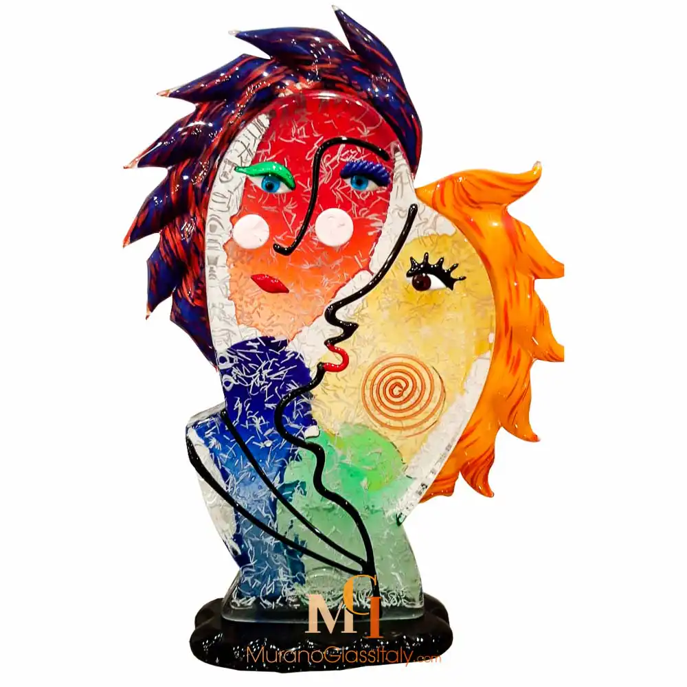 The displayed Picasso Heads – Allegra Sculpture manifests luxury with a touch of Italian allure. For the edgy and modern living. The exquisite 1000 years old Murano glass blowing tradition meets contemporary chic notes of design in this truly stunning sculpture. This sculpture will make a beautiful centrepiece or an unforgettable gift. The artwork comes with a certificate of authenticity.