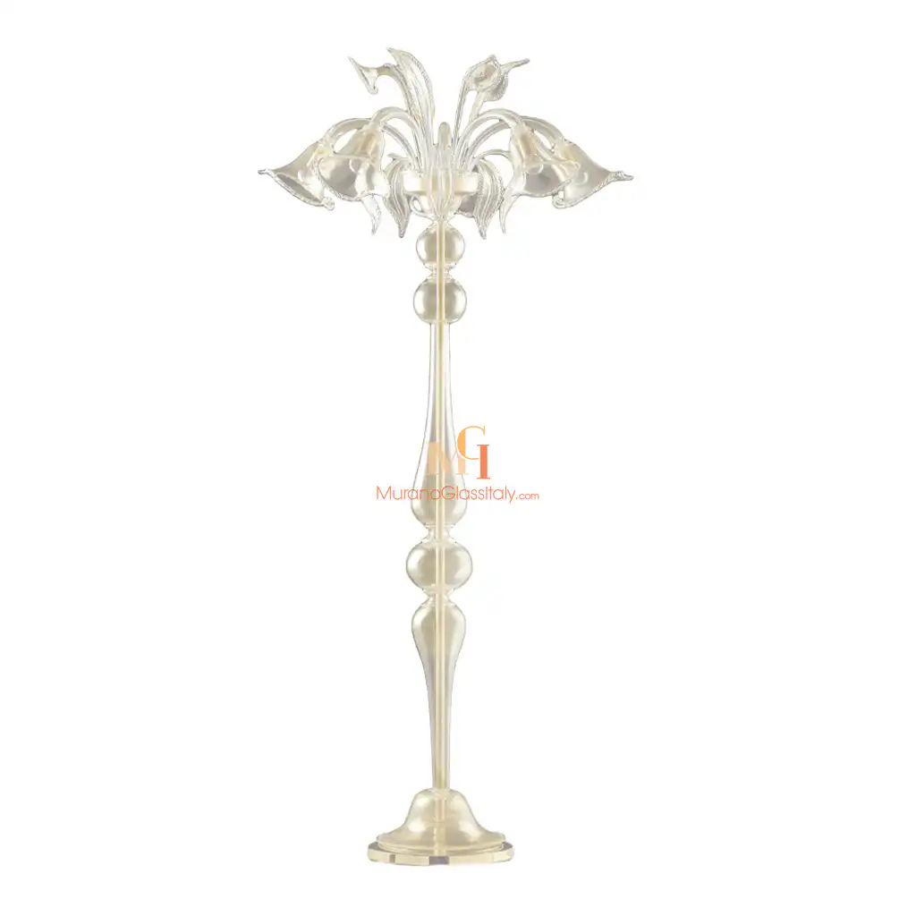 Bring the radiant beauty of Venice into your home with the Murano Floor Lamp Alba, a breathtaking piece entirely handmade in the heart of Venice by our MuranoGlassItaly artisans. Every curve, petal, and contour is shaped with mastery, capturing the essence of Murano’s centuries-old glassmaking tradition.