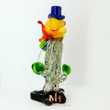 Looking for fun, quirky pieces to light up your space? Our Murano Glass Clown Figurines, like the delightful Bim Bam and Bam Bam, are sure to make you smile a lot! Handmade in the heart of Venice by our talented MuranoGlassItaly artisans, these clowns are more than just decorative pieces—they represent centuries of craftsmanship and the joyful tradition of clown-making in Murano. Each one is a celebration of color, creativity, and expert glassmaking, passed down through generations with care. Bim Bam and Bam Bam stand tall with whimsical smiles, vibrant details, and playful ruffles. Their large top hats and signature curly hands give them personalities as cheerful as their appearances. Imagine Bim Bam and Bam Bam standing on your mantel, bringing double the laughter into the room. Or perhaps they’re the perfect companions for a desk, serving as daily reminders to embrace joy, fun, and lightheartedness. These charming clowns also make thoughtful gifts. Whether it’s for a birthday, a special celebration, a housewarming, or simply to say, “We thought of you,” Bim Bam and Bam Bam will spark happiness. And if you’re gifting them, we’re happy to include a personalized dedication to make it extra special. Just email us at customer@muranoglassitaly.com. Murano Glass Clown Figurines like Bim Bam and Bam Bam are unique treasures that brighten any space!