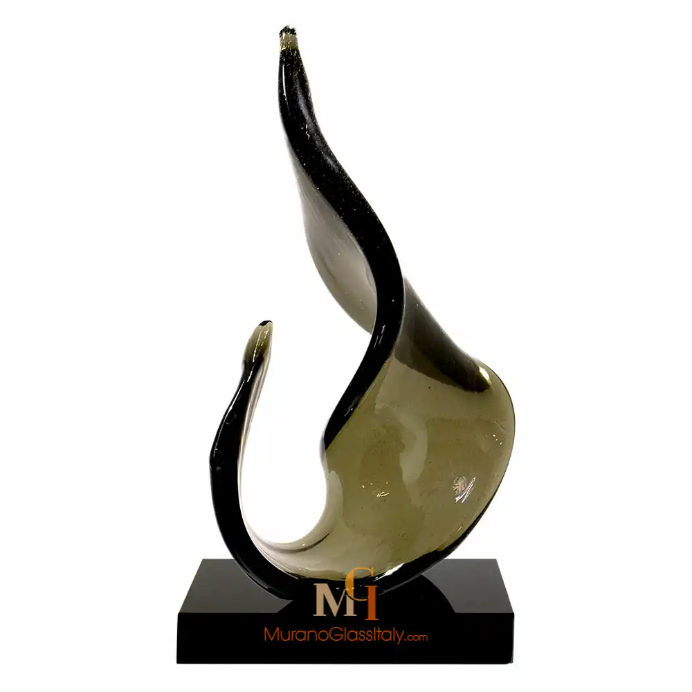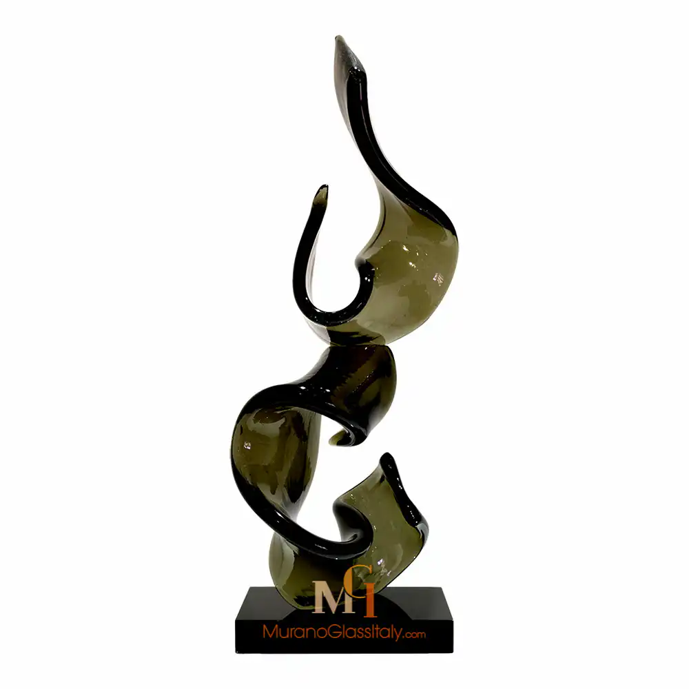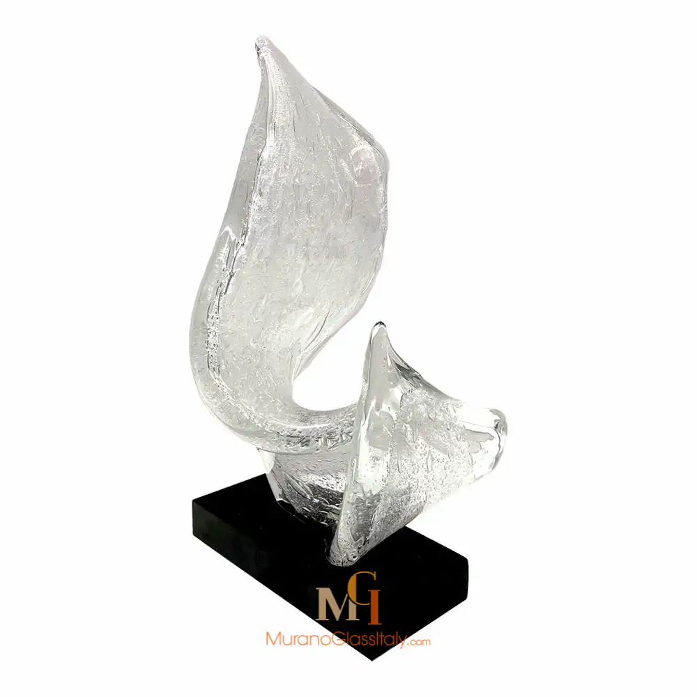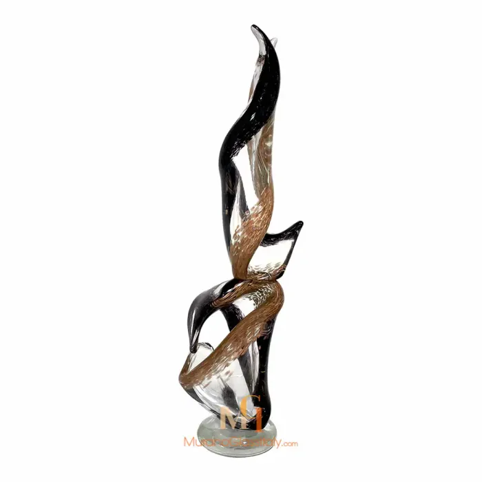 “Forza” is an exquisite contemporary Murano Swirl Sculpture that beautifully embodies the fusion of form and essence, creating an eloquent masterpiece. Two sinuous elements rise gracefully, creating a sense of upward movement that transcends the boundaries of the material world. These sculpted forms, representing the essence of vitality itself, offer a captivating dance of light and color as they ascend. Their fluid contours breathe life into the artwork, creating an ever-shifting interplay of shadows and luminosity. This versatile artwork can be experienced in two distinct configurations, each captivating in its own right. The single-element composition stands as a testament to the singular force of life, while the two-element arrangement symbolizes the union of energies, a harmonious blend that resonates with shared vitality. Additionally, it is also possible to choose from three color variations to suit your aesthetic and mood. The clear glass variant embodies purity and clarity, a timeless expression of life’s essence. Fumè adds an element of mystery and depth, while the multicolor version, adorned with Avventurina, radiates a sense of adventure and dynamism. Whether adorning a space as a single element or as a dynamic duo, the artwork adds an air of sophistication and vitality. It gracefully complements various environments, where it serves as an emblem of shared energy. Let “Forza” infuse your space with the timeless beauty of vitality and movement! For any questions about our Murano Swirl Sculpture, please contact us at customer@muranoglassitaly.com