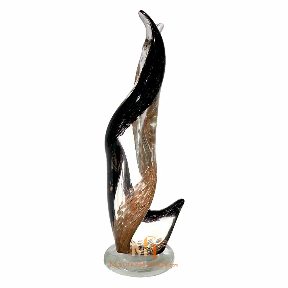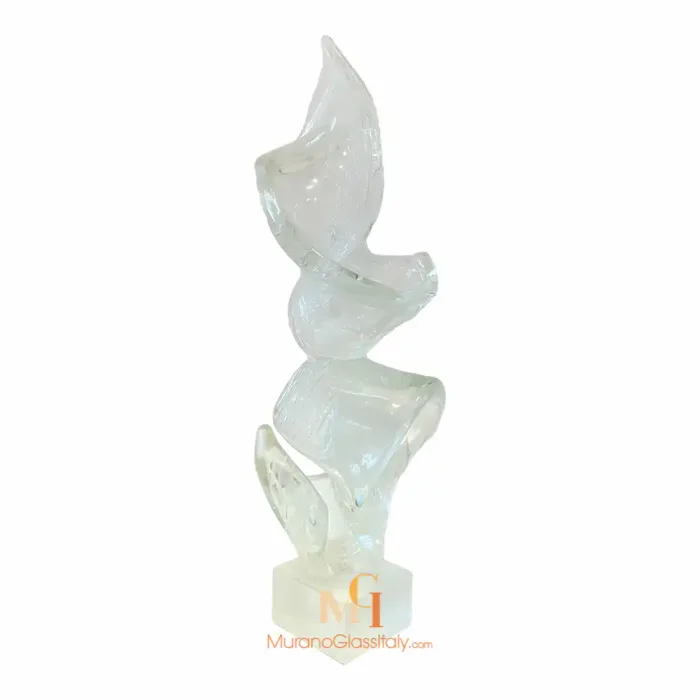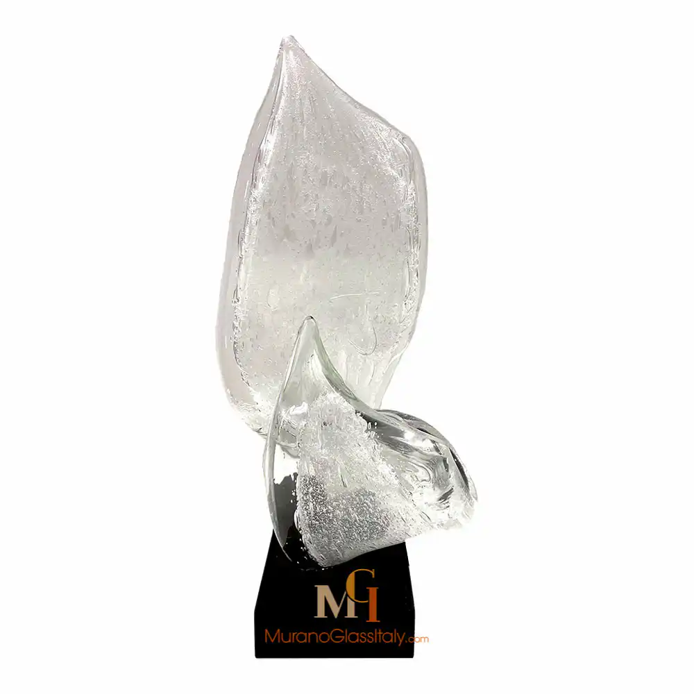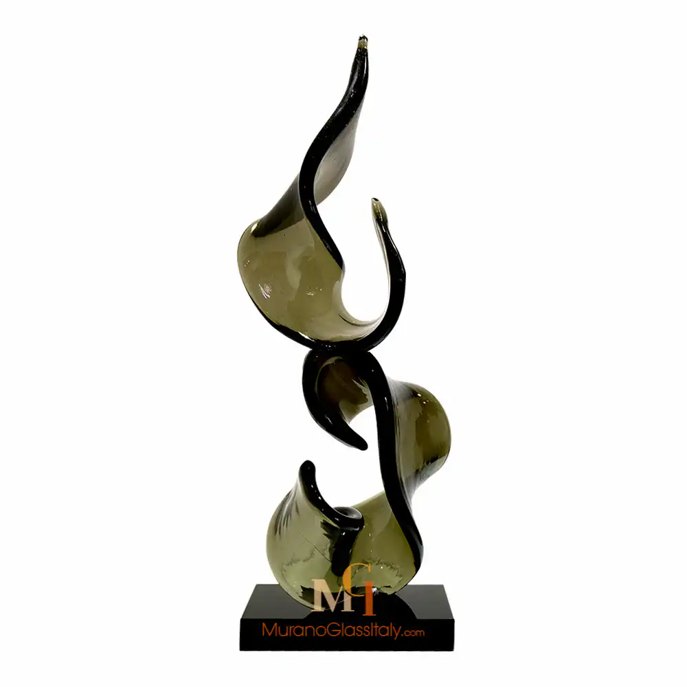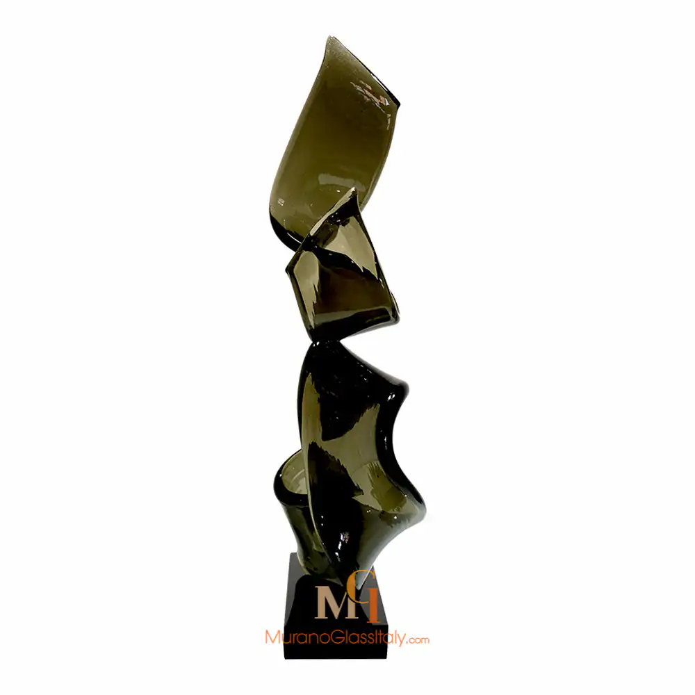 “Forza” is an exquisite contemporary Murano Swirl Sculpture that beautifully embodies the fusion of form and essence, creating an eloquent masterpiece. Two sinuous elements rise gracefully, creating a sense of upward movement that transcends the boundaries of the material world. These sculpted forms, representing the essence of vitality itself, offer a captivating dance of light and color as they ascend. Their fluid contours breathe life into the artwork, creating an ever-shifting interplay of shadows and luminosity. This versatile artwork can be experienced in two distinct configurations, each captivating in its own right. The single-element composition stands as a testament to the singular force of life, while the two-element arrangement symbolizes the union of energies, a harmonious blend that resonates with shared vitality. Additionally, it is also possible to choose from three color variations to suit your aesthetic and mood. The clear glass variant embodies purity and clarity, a timeless expression of life’s essence. Fumè adds an element of mystery and depth, while the multicolor version, adorned with Avventurina, radiates a sense of adventure and dynamism. Whether adorning a space as a single element or as a dynamic duo, the artwork adds an air of sophistication and vitality. It gracefully complements various environments, where it serves as an emblem of shared energy. Let “Forza” infuse your space with the timeless beauty of vitality and movement! For any questions about our Murano Swirl Sculpture, please contact us at customer@muranoglassitaly.com