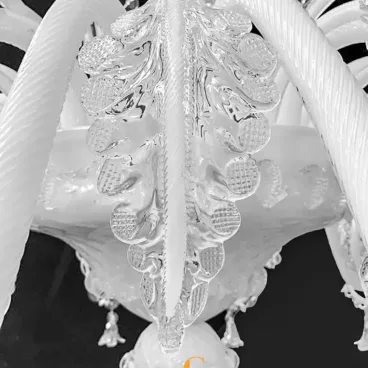 ホワイトムラノグラスシャンデリアの時代を超越した美しさで空間を照らしましょう。ヴェネチアの中心で手作りされています。 ムラノガラスの職人によってヴェネチアの中心部で手作りされたこの傑作は、ヴェネチアのエレガンスの真髄を表現しています。繊細なカーブや細部に至るまで、熟練したガラス職人の情熱とノウハウが反映されています。彼らは溶けたガラスを息をのむような光の彫刻に成形し、魔法のようなシャンデリアを作り出します。