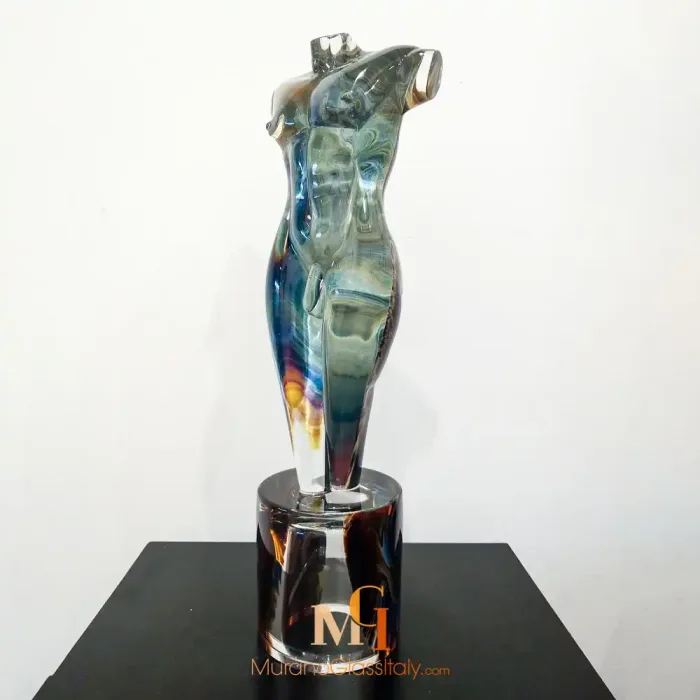 The sculpture represents the beauty of the human being. Inspired by Greek classicism, the sculpture presents an image of geometric perfection. The Blown Glass Artwork is made entirely by hand inside the Venetian furnaces. Here the glass processing techniques are handed down from generation to generation, from father to son. For this reason, each Murano glass artwork is a unique masterpiece of great artistic value. The surprising combination of colors is obtained thanks to a particular technique. Like an alchemist, our artist mixes silica and minerals to obtain unique colors. The result is a sculpture with breathtaking shades and colors. Wherever it is placed, this sculpture creates reflections and plays of light. The sculpture is available in the male version “Adone” or in the female version “Venere”. It can also be chosen in two different sizes. Additionally, as we create all our products 100% by hand, upon request, it is possible to customize the Blown Glass Artwork in terms of shape or size. For any request, please do not hesitate to contact us. Our experts will be happy to support you. Please write us an email at the address customer@muranoglassitaly.com