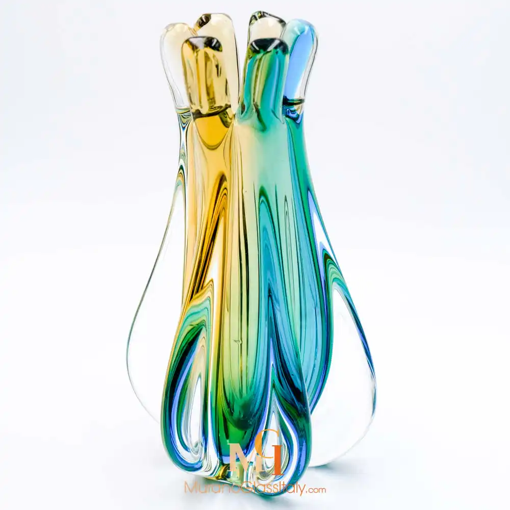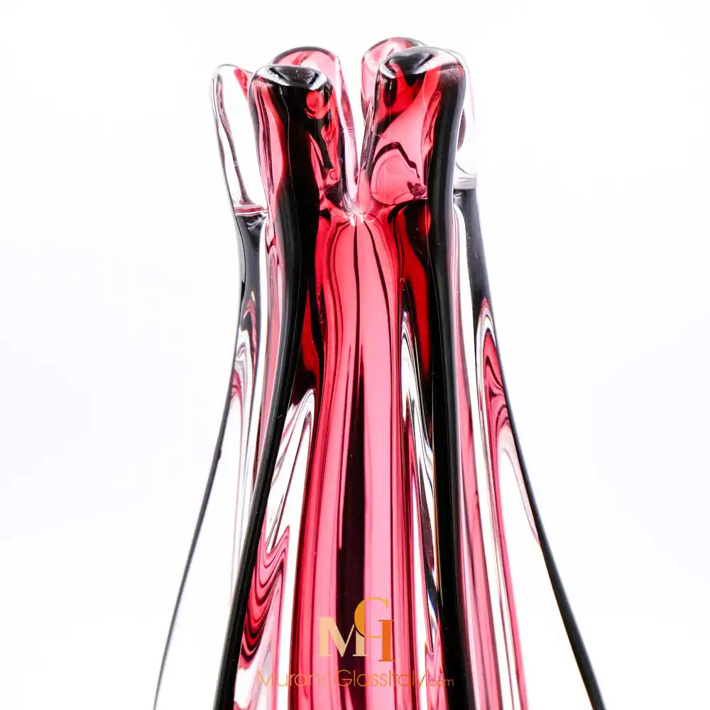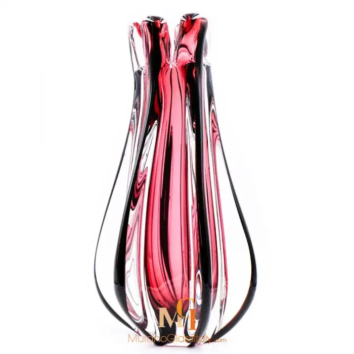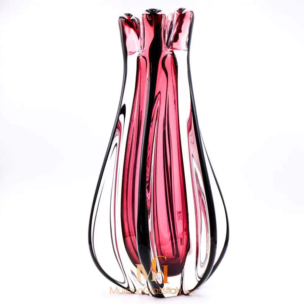 The displayed Battuto Vase manifests luxury with a touch of Italian allure. For the edgy and modern living. The unorthodox color combinations and surface textures give a modern feel to the artwork. The exquisite 1000 years old Murano glass blowing tradition meets contemporary chic notes of design in this truly stunning vase. This vase will make a beautiful centerpiece or an unforgettable gift. The artwork comes with a certificate of authenticity.