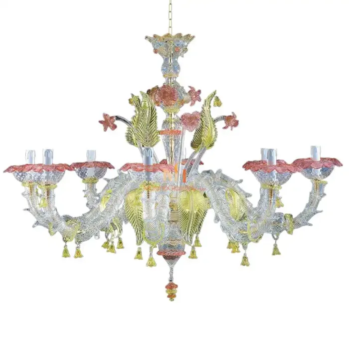 Bring home royal splendor with Chandelier Murano Glass Impero and let it illuminate your space with timeless Italian elegance. Handcrafted in the heart of Venice by our MuranoGlassItaly artisans, this masterpiece captures the essence of imperial grandeur. The Impero—Italian for “Empire”—lives up to its name with opulent curves, delicate floral details, and a soft blend of rose, amber, and crystal-clear glass.
