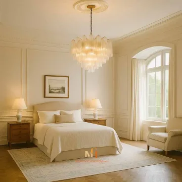 Villa takes its name from the grand Venetian villas that inspired its layered, cascading design. Each element reflects splendor and balance, turning any ceiling into a focal point of glamour. This artwork brings grace to living rooms, hotel lobbies, dining halls, or refined entryways, casting a warm, ambient glow that soothes and impresses.