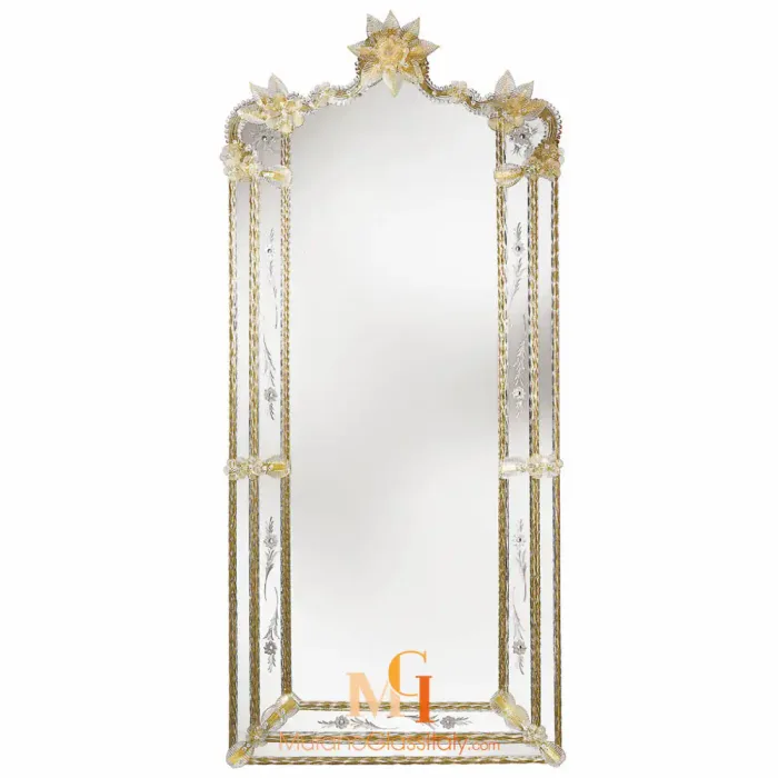 Bring the timeless beauty of Venice into your home today. Experience the elegance, craftsmanship, and history that only a true Venetian mirror can offer. Our Full Length Venetian Mirror will transform your space into a haven of sophistication. For any requests, please contact our experts at customer@muranoglassitaly.com.