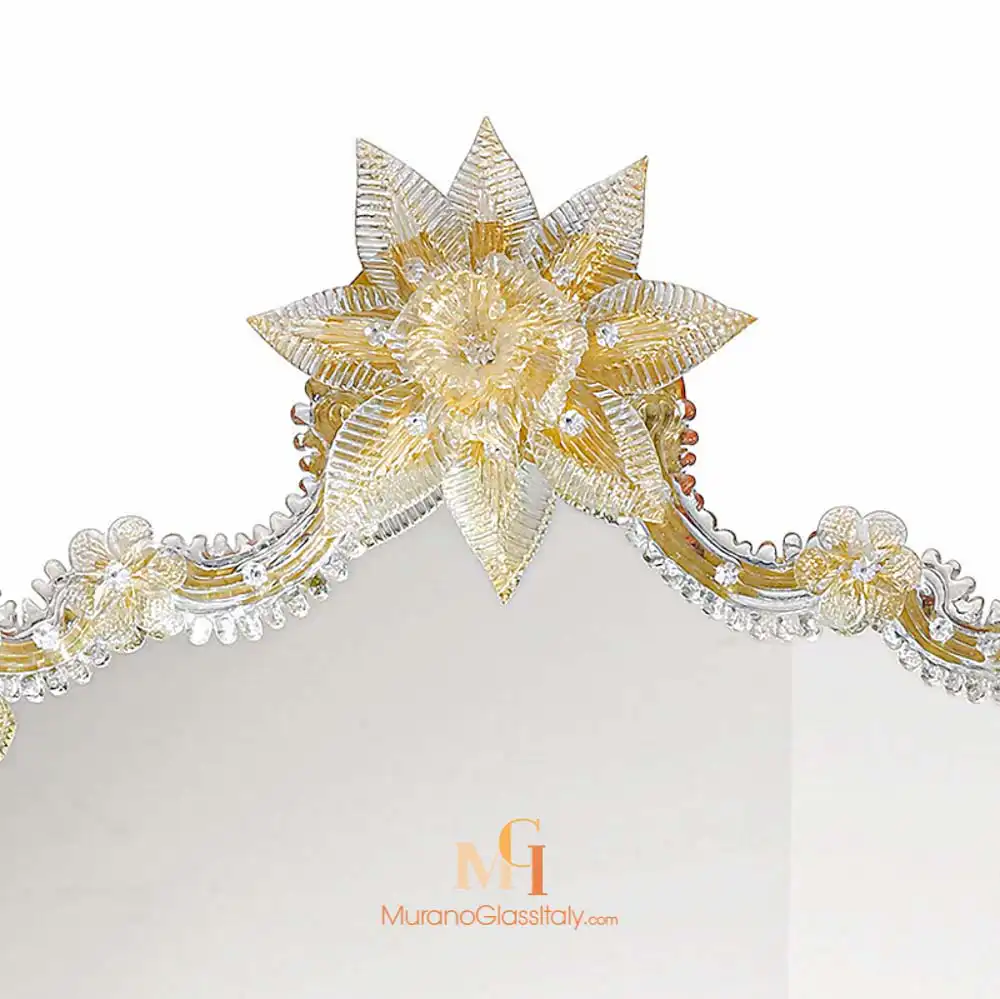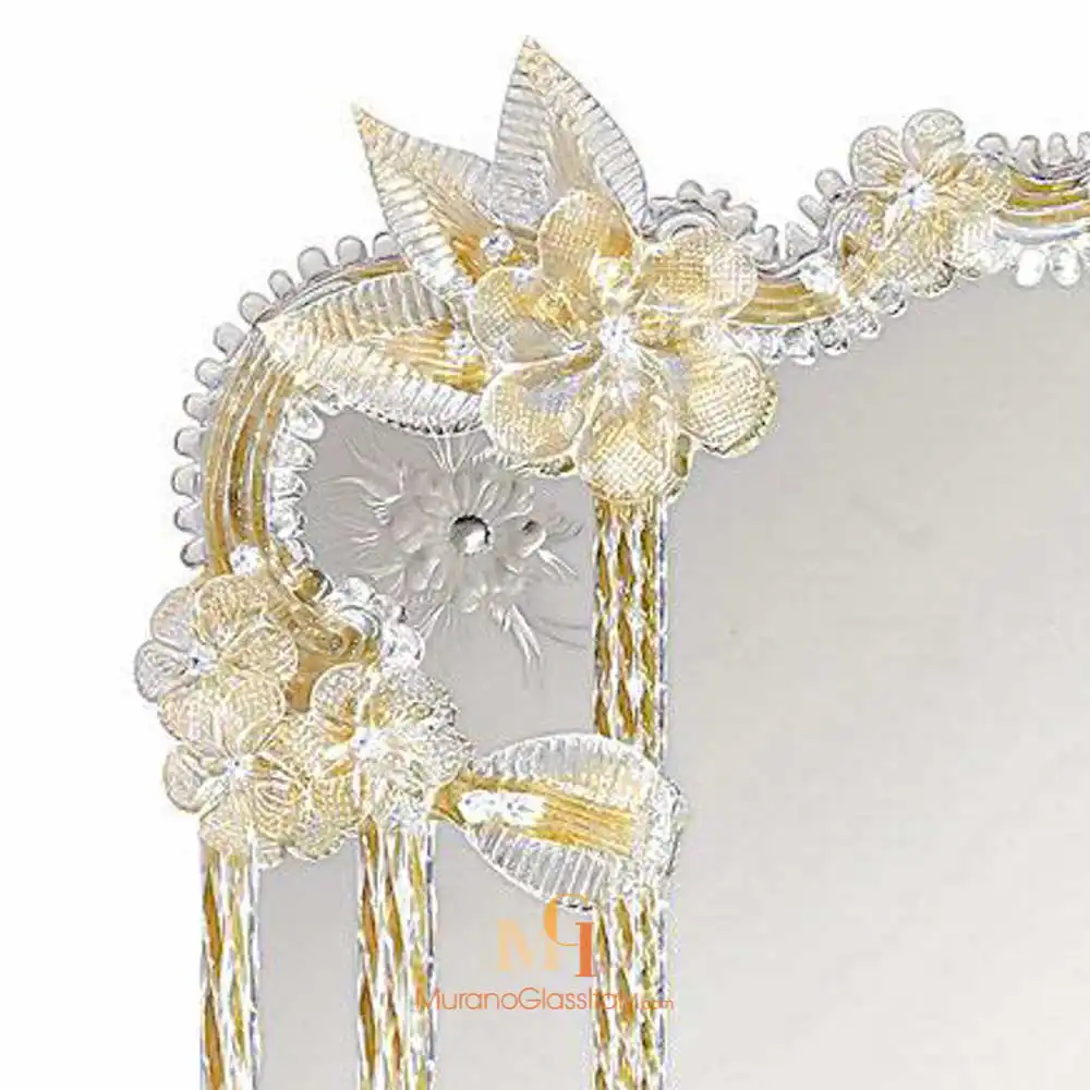Owning a Murano mirror like this, is more than having a decor piece; it’s possessing a piece of Venetian heritage. Its intricate design and masterful craftsmanship ensure it becomes an heirloom. At MuranoGlassItaly, we believe in reflecting your unique style. Customize the Bologna Mirror to fit your vision perfectly. Choose the size, shape, orientation, and even the color and shape of the floral decorations.