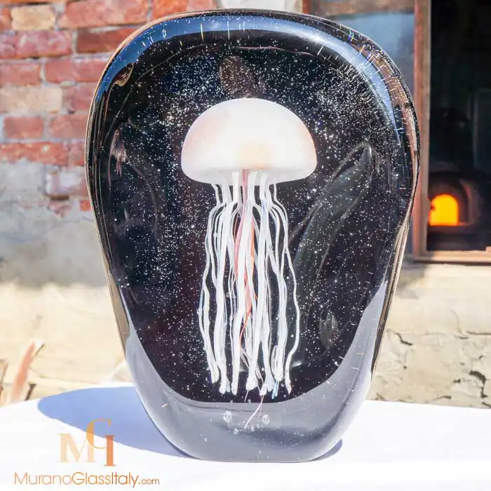 A beautiful sculpture is much more than just a design element, this enchanting aquarium offers timeless elegance and a sophisticated inviting ambiance. The displayed Italian Glass Aquarium Sculpture captures the beauty of the amazing underwater world. It gives a glimpse of how a beautifully crafted sea creature travels effortlessly across the water. A unique piece, that is forever inspiring and fascinating. The artwork comes with the certificate of authenticity.