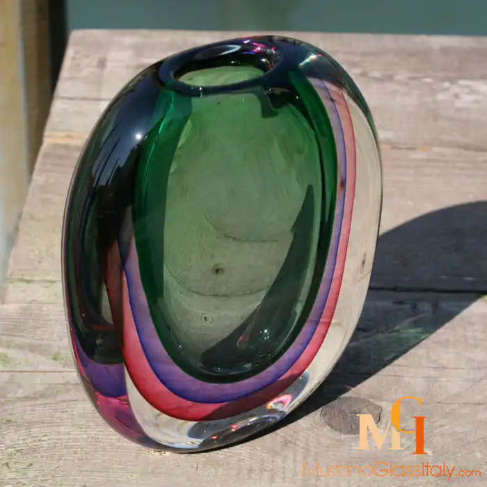 Expertly hand crafted in Murano, the displayed Blue Sommerso Vase exhibits an exquisite hand blown build. Presenting a modern form, the elegant design is pure class. Make your dining room and side table the centre of attention with this statement piece. This vase will make a beautiful centrepiece or an unforgettable gift. The artwork comes with a certificate of authenticity.
