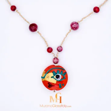 Production: handmade glass necklace made in Venice, Italy
