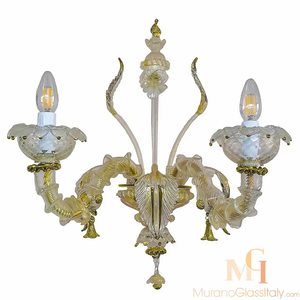 Elevate your space with the timeless elegance of a Murano Glass Wall Sconce handcrafted by our artisans in the heart of Venice. Inspired by the delicate beauty of the orchid flower, “Orchidea” brings Venetian charm and luxury to any setting. Each curve and detail is masterfully shaped by our skilled MuranoGlassItaly artisans, making this wall sconce not just a light source, but a true piece of art.