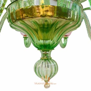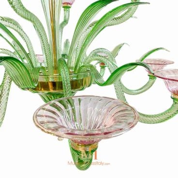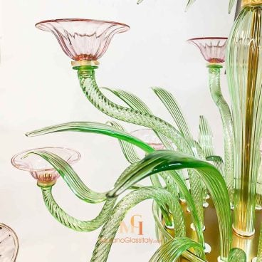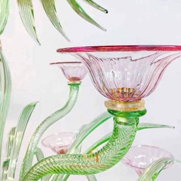 Experience the enchanting allure of our Coloured Glass Chandelier and immerse yourself in the timeless elegance of traditional Italian artistry. Handcrafted with care and precision by our skilled artisans, the Smeraldo is a true testament to the timeless beauty of Venetian craftsmanship. The name “Smeraldo” means “emerald” in Italian, and the chandelier reflects the same radiance and allure as the precious gemstone. The green arms and leaves of the chandelier evoke a sense of nature and growth, while the upward-facing pink flower cups symbolize beauty and femininity. The combination of these elements creates a truly enchanting and captivating aesthetic that will elevate any space. At MuranoGlassItaly, we take pride in our commitment to quality, value, and authenticity. Each artwork is a unique and handmade work of art, crafted with the utmost attention to detail and care.