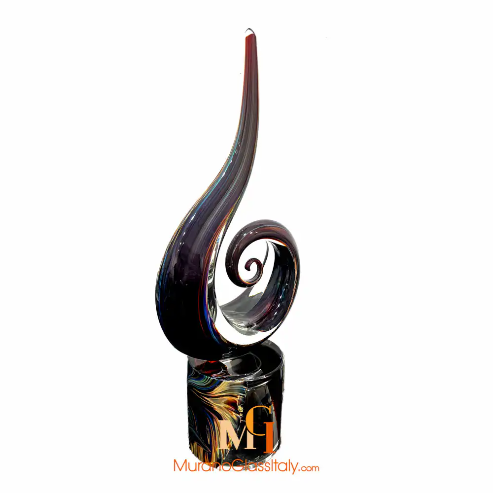 The Murano Glass Spiral Sculpture is more than just a decorative object. The spiral in fact represents the infinite movement of life. It symbolizes the consciousness of nature that starts from the center and expands outwards. the artwork celebrates life, creation, birth, evolution, awareness, and growth or development. At the same time, it also represents the physical, mental and spiritual development of human life as it unfolds through the years and seasons. This beautiful sculpture is not only a decorative object, but it is also a significant work of art, a symbol of energy that reminds us of the passage of time. Wherever you place it, it evokes positive emotions and vibrations. This masterpiece is handcrafted by the best Venetian artisans. The extraordinary combination of colors is obtained through a very particular technique. Like an alchemist, our artist mixes silica and precious minerals, creating unique nuances that vary from green to purple, green, blue, and brown. As we create all our artworks by hand, upon request, it is possible to customize the Murano Glass Spiral Sculpture in terms of size and shape. For any questions, please write us an email at customer@muranoglassitaly.com.