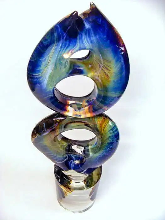 Изготовленные из редкого халцедонового стекла, художники, подобно искусным алхимикам, смешивают кремнезем с драгоценными минералами, чтобы создать завораживающие цвета. Глубокий голубой, сияющий амбре и мягкая зелень уникально сочетаются в каждом изделии, поэтому нет двух одинаковых скульптур. Переплетающийся дизайн символизирует единство и гармонию, что делает его идеальным для Вашего дома или в качестве значимого подарка на свадьбу, юбилей или по другому особому случаю. Вы даже можете заказать персонализированное цифровое посвящение, чтобы сделать Ваш подарок поистине незабываемым.