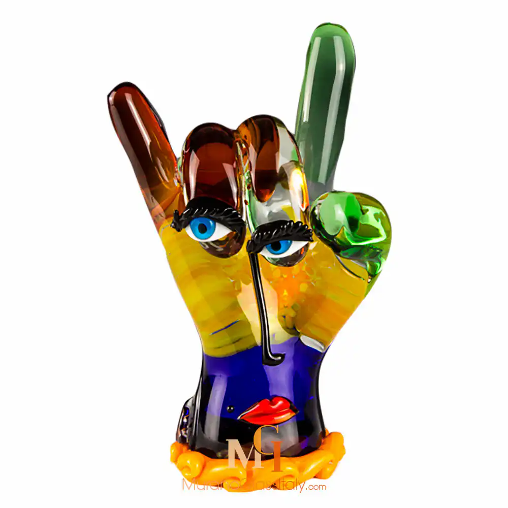展示的穆拉诺玻璃手雕 – 摇滚是一件俏皮的雕塑作品。色彩丰富,线条简洁。这件雕塑具有现代感,为空间增添了个性。时尚的雕塑为您的装饰增色不少。手吹艺术品附有真品证书。打破常规,让您的空间彰显个性。