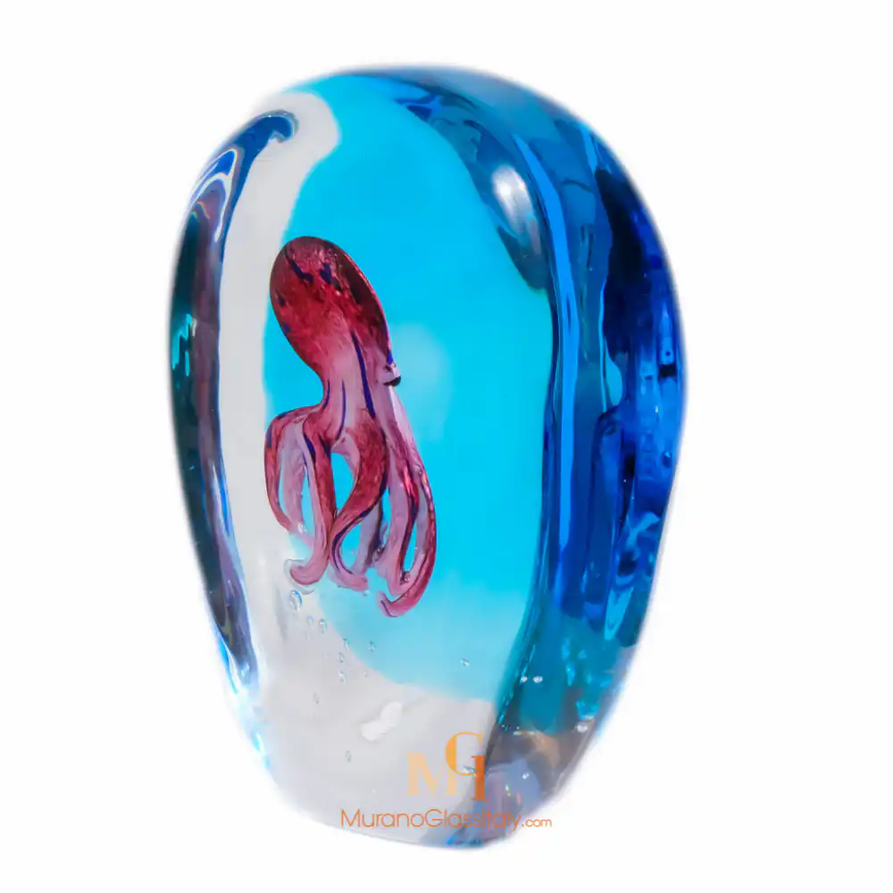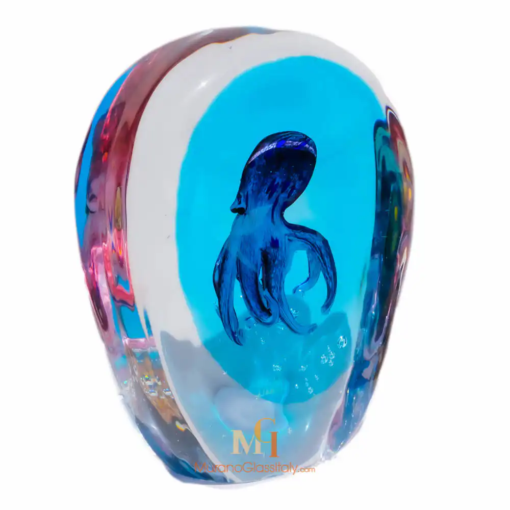 探索玻璃章鱼雕塑 Tritone 的迷人之美,它将把您带入海底仙境。这件非凡的作品由威尼斯穆拉诺岛上的能工巧匠精心手工制作而成,堪称独一无二。让您沉浸在地中海神奇的水下世界,神话中的章鱼 Tritone 以优雅和智慧统治着这里。穆拉诺玻璃工匠数百年来精益求精的技艺在这件非凡的杰作中得到了淋漓尽致的展现。水族箱中央的玻璃章鱼经过精心雕琢,复杂的细节让 Tritone 栩栩如生。色彩交织在一起,创造出一幅令人叹为观止的色调全景图。这件作品的独特之处在于它的色彩–没有两个 Tritone 水族箱是完全相同的,这使得每一个都成为您家中或办公室真正特别的装饰品。拥有一件穆拉诺水族箱不仅仅是对一件精美艺术品的投资,更是与穆拉诺玻璃制造古老传统的一次意义非凡的联系。玻璃章鱼雕塑不仅是一件令人叹为观止的艺术品,而且也是一件真正非凡而珍贵的礼物。无论您是为特殊场合寻找一份独特的礼物,还是仅仅想犒劳一下自己,这件杰作都一定会给您留下深刻的印象。如对我们独特的穆拉诺玻璃艺术品有任何疑问,请通过以下方式联系我们 customer@muranoglassitaly.com