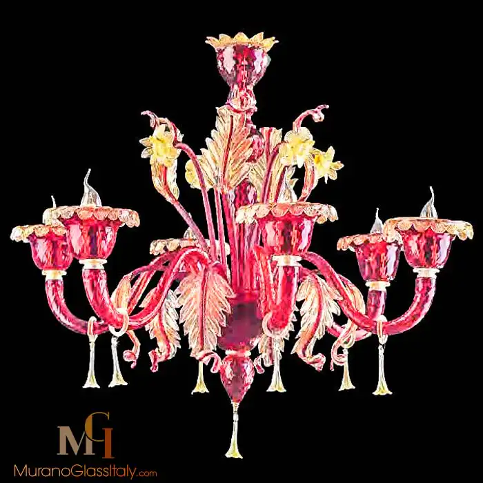 红色穆拉诺玻璃吊灯 – Glorioso – 镶 24K 金